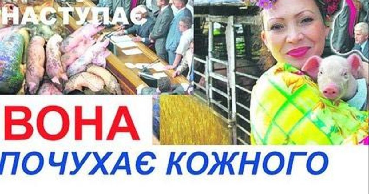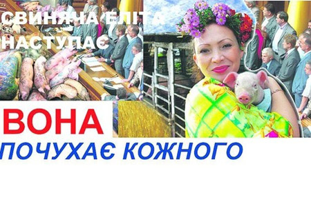 «Свиняча еліта наступає» — такой «билборд» опубликовал Михаил Притула, лидер партии «Селянська Украина», которая выдвигает кандидатом в президенты свинарку Лидию Степановну Вону.