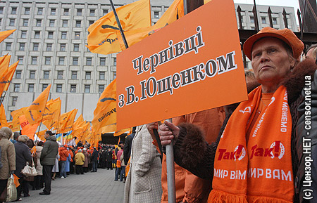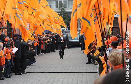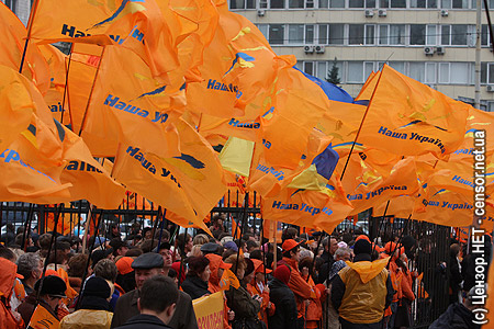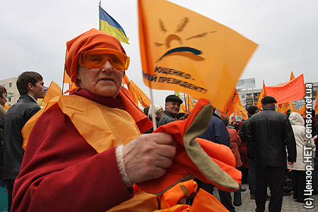 "Самовыдвижние" пестрело оранжевыми флагами "Нашей Украины"...
