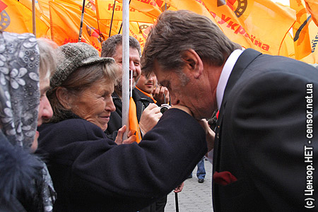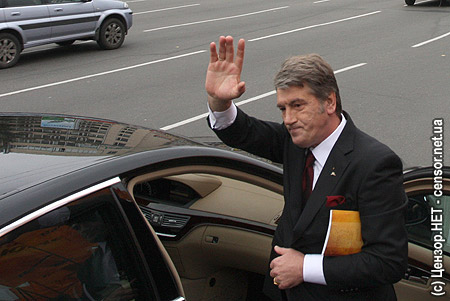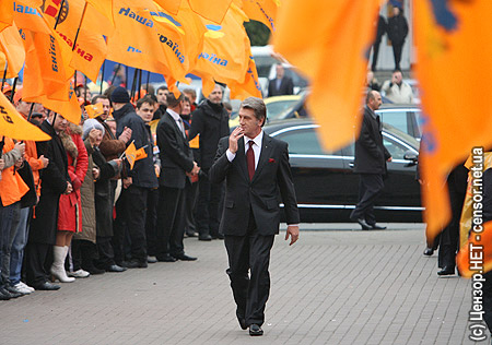 Ющенко пориветствовал собравшихся странным воздушным поцелуем