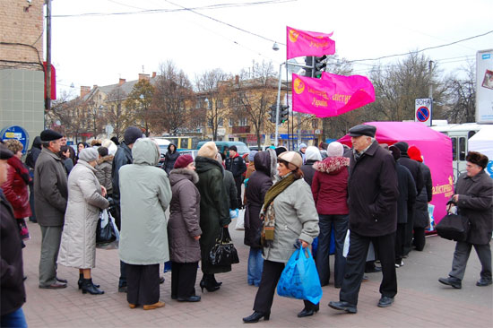 Поскольку лишь Фонд Николая Рудьковского распространяет маски на улицах города, за ними стоят очереди.