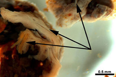 9. Девятое место досталось обнаружению и исследованию мягких тканей (кровеносных сосудов, костного матрикса и т. п.) в останках небольшого динозавра из рода T. Rex. Последующий анализ показал, что аминокислотная составляющая динозавров схожа с подобной у современной курицы.