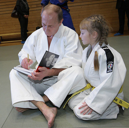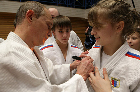 Премьер провел целую серию успешных бросков - через плечо, бедро, кувырком назад, повалив не одного партнера (в том числе и довольно тяжеловесного) на татами. После тренировки премьер сфотографировался со спортсменами и обсудил с членами сборной за чашкой чая будущее российского дзюдо. Самой юной дзюдоистке 8-летней Свете премьер подписал свою книгу "Дзюдо с Владимиром Путиным".