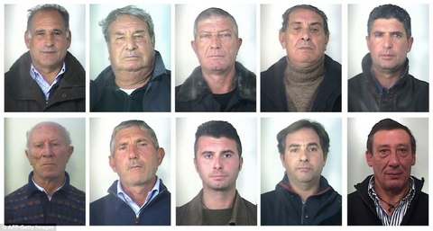 Члены сицилийской мафии (слева направо), Salvatore Lo Bue, Salvatore Lo Cicero, Gaetano Lo Presti, Giuseppe Scaduto, Antonino Spera, Gregorio Agrigento, Luigi Caravello, Mariano Troia, Giovanni Adelfio and Francesco Bonomo