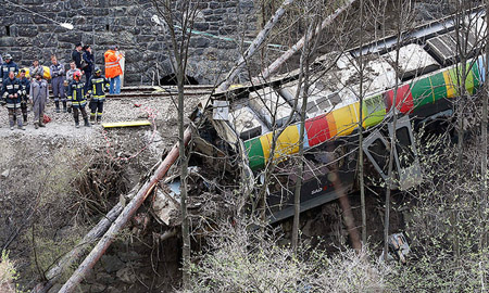 В Италии электричка сошла с рельс из-за оползня. ФОТОрепортаж.