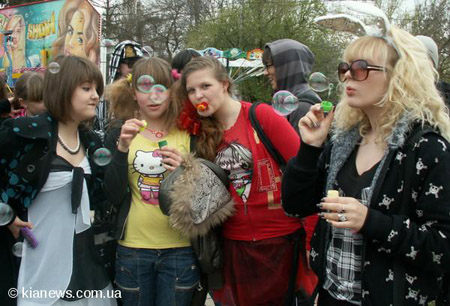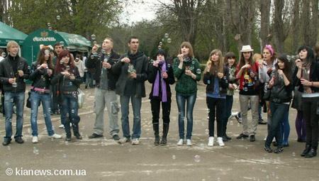 В парке им. Ю. Гагарина собралось более 100 молодых людей, одетых в яркие разноцветные наряды. Атрибутом костюма многих из присутствующих была соска-пустышка.В парке звучали детские песенки, а молодежь пускала в небо мыльные пузыри.