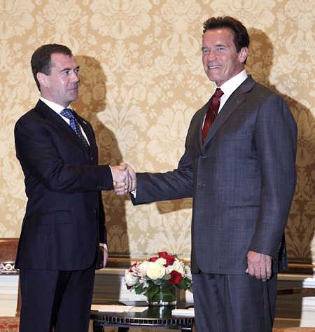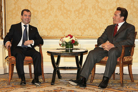 Визит президента Дмитрия Медведева в США начался со встречи с губернатором Калифорнии Арнольдом Шварценеггером.