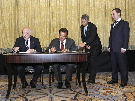 Бывшая кинозвезда заявила, что Медведев - особый гость даже для видавшей виды Калифорнии. Шварценеггер показал Медведеву Сан-Франциско, а затем они обсудили предстоящий визит президента в Силиконовую долину. Там Медведев намерен перенять опыт для создания иннограда в Сколкове. Также в ходе встречи был заключен контракт о финансировании исторического памятника "Форт-Росс" - крепости, которую в начале XIX века основал вологодский купец Иван Кусков. Содержать "Форт-Росс" будет группа компаний "Ренова" Виктора Вексельберга. Российский президент же рассказал, что собирается посетить Силиконовую долину, и перенять опыт для проекта наукограда в Сколкове.