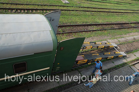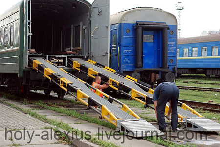 Пользователь ЖЖ holy-alexius выложил фотографии, как машину Патриарха Кирилла загружают в вагон поезда в Москву. Событие состоялось в среду, когда визит Кирилла завершился и патриарх благополучно отбыл на родину.