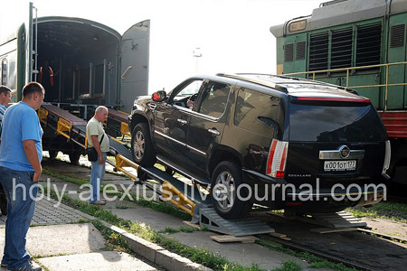 Патриарх Кирилл увез из Киева в замаскированном вагоне два Cadillac Escalade. ФОТОрепортаж.