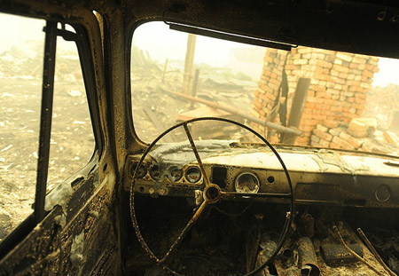 сгорели штаб, финансовая часть, клуб, два бокса автомобильного парка, 13 хранилищ с авиационным имуществом различного назначения, 17 открытых площадок для хранения техники с находившимися на них автомобилями