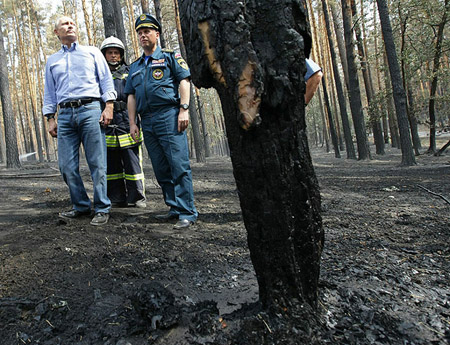 Премьер-министр России Владимир Путин побывал в пострадавших от пожаров районах Подмосковья и Воронежской области.