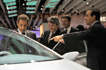 Глава Renault Карлос Гон проводит экскурсию для президента Франции Николя Саркози и министров французского правительства