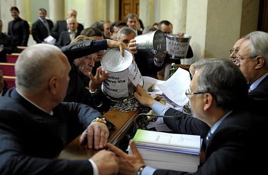После того, как "бютовцы" Роман Забзалюк, Сергей Сас, Андрей Павловский высыпали на стол главы правительства, где сидел министр финансов монеты, руководитель Минфина схватил один из томов Налогового кодекса и запустил в "бютовцев".