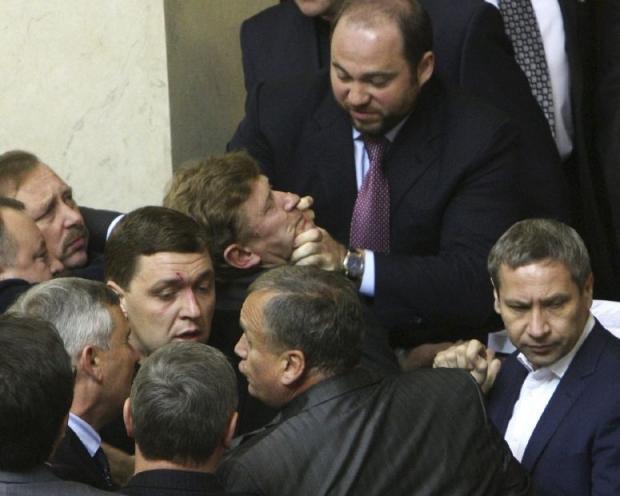 Драка в Раде: министр финансов рассек бровь бютовцу. ФОТОрепортаж.
