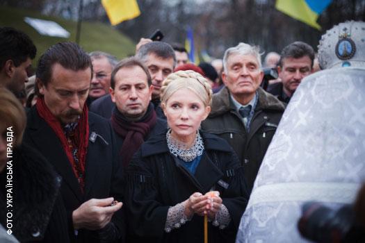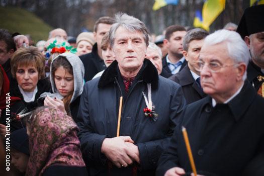 Среди участников шествия к мемориалу бывшие президенты Леонид Кравчук и Виктор Ющенко, лидер партии "Батькивщина" Юлия Тимошенко, депутаты от БЮТ, НУНС и внефракционные, представители иностранных посольств, а также внепарламентских партий.