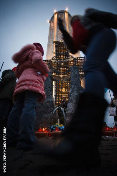 У национального мемориала жертвам голодоморов в Парке Славы в Киеве прошла панихида в память о 77-й годовщине Голодомора 1932-33 годов.