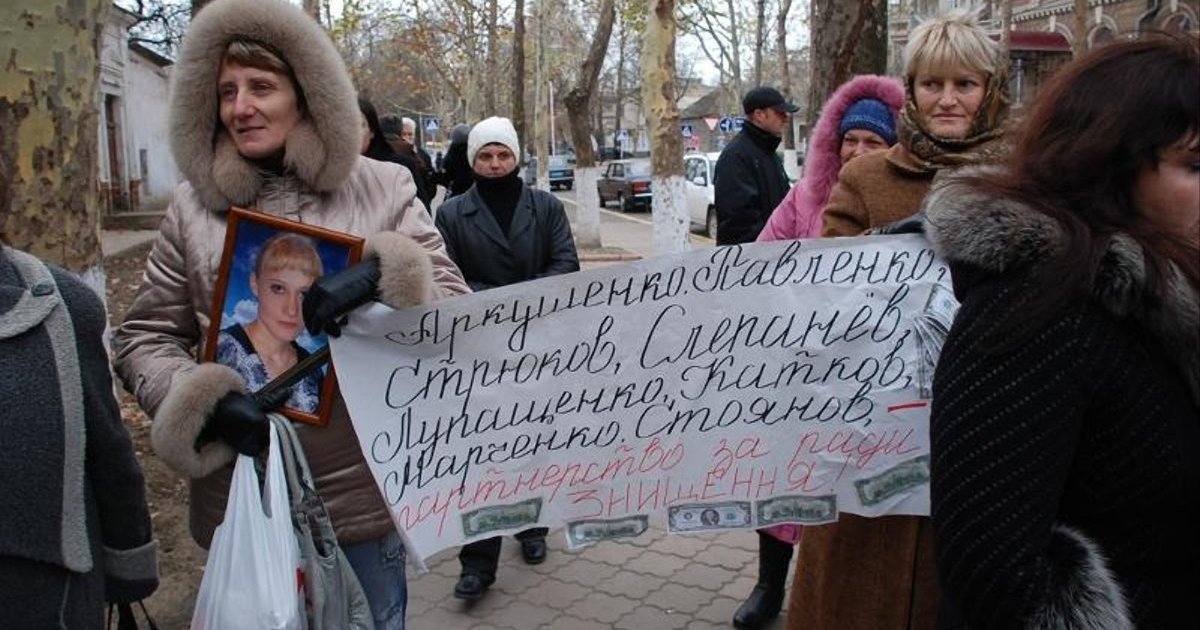 Родители держали в руках портреты погибших детей, плакат с фамилиями высшего милицейского руководства, обклеенный ксерокопиями стодолларовых купюр.