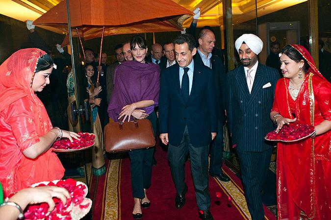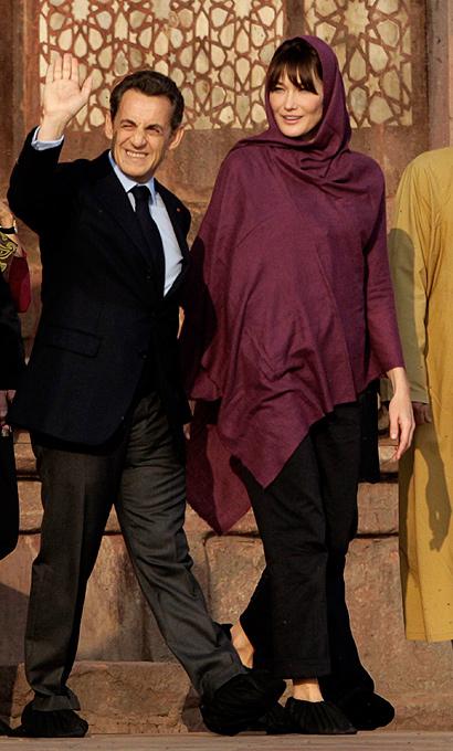 Президент Франции Николя Саркози с женой - бывшей моделью Карлой Бруни посетили Индию. В субботу вечером они, изменив программу, неожиданно решили посетить знаменитый мавзолей Тадж-Махал. Охрана памятника была буквально поднята "на уши" за час до приезда президентской четы. Многочисленные туристы и паломники были очень недовольны, когда их бесцеремонно выгнали с территории памятника. На следующий день после этого Бруни и Саркози посетили мусульманскую святыню - мечеть суфийского святого шейха Салима Чишти. Шейх известен тем, что предсказал рождение троих сыновей одному падишаху, который уж было отчаялся обзавестись наследником. Настоятель мечети рассказал об этом Карле Бруни, и она призналась, что сама тоже молится, чтобы у нее родился сын. Также в рамках визита Бруни посетила приют для больных СПИДом детей и встретилась с политком Соней Ганди. Наконец, Саркози удалось заключить с Индией важные соглашения в области энергетики.