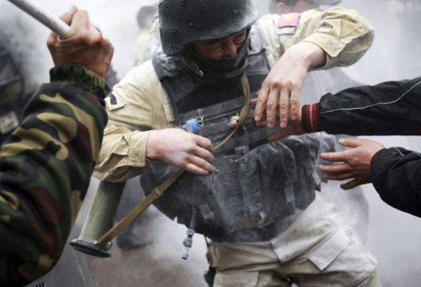 Фото Владимира Пирогова. Кыргызстан, Бишкек. Столкновения демонстрантов с милицией во время акции протеста против роста тарифов. (Reuters)