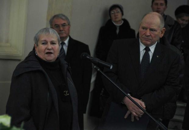 В конце церемонии в зал зашла заместитель главы администрации президента Анна Герман. В это время Николай Жулинский зачитывал телеграммы, которые поступили в адрес родственников покойной. Он несколько минут читал телеграмму, потом сказал, что ее написал президент Виктор Янукович. В зале начинают перешептываться, смеяться. Несколько мужчин говорят: "Позор!" И "Это Германша написала". Анна Герман подходит к гробу. Кладет цветы и направляется к выходу.