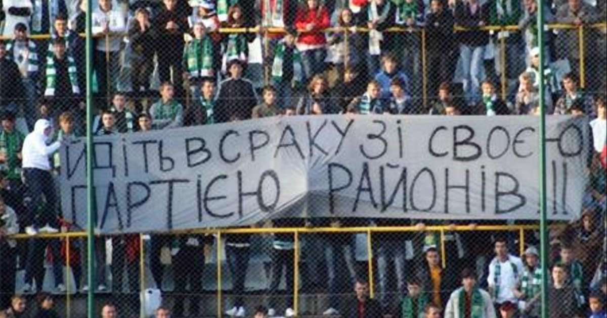 Фанаты "Карпат" - власти: "Йдіть в ср...у зі своєю "Партією районів". ФОТО.