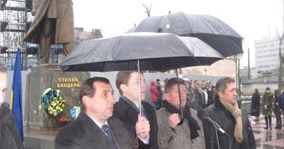 Депутаты Львовского облсовета мокли под дождем за Бандеру. ФОТОрепортаж.