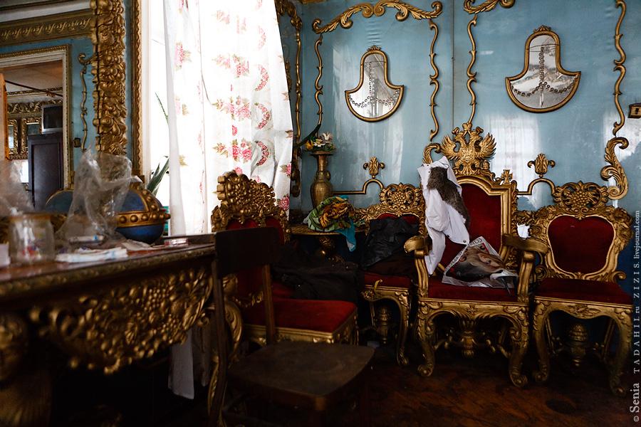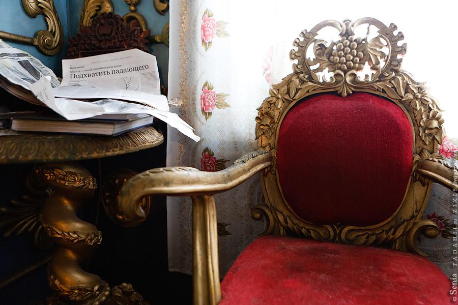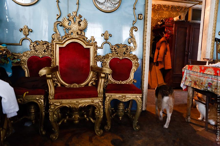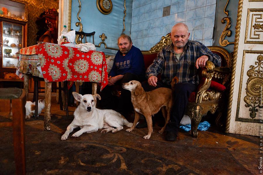 Сейчас дом и его жители оставляют очень тягостное впечатление. Еще год назад все было совсем по другому, сейчас же наборный пол из нескольких пород дерева начисто убит ботинками и собаками, кресла и лакированные столы чем-то залиты, все насквозь провоняло псиной и кошатиной. Местные жители прекрасно знают его дом, практически любой может подсказать если не точный адрес, то примерное месторасположение. Большинство считают его сумасшедшим, кто-то алкоголиком. В его доме кроме сына постоянно находятся еще два мужика – Николай и Михаил. То ли собутыльники, то ли так, от чистого сердца. Я предусмотрительно приехал утром и в их отношения не вникал.