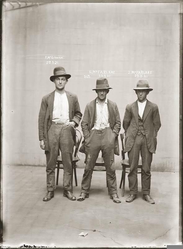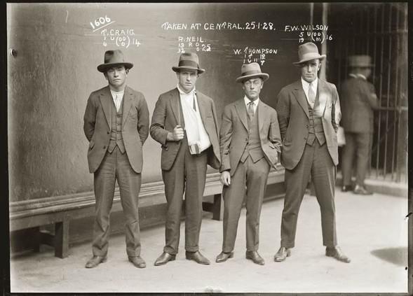 Глядя на эти фото вспоминается период накопления капитала, "лихие 90-е". С той разницей, что этих "героев" прошлого века от современных "братков" хотя бы внешне отделяет пропасть. По крайней мере эти "джентльмены удачи" смотрятся намного колоритней в костюмах и шляпах, чем те "пацаны-торпеды" в 90-тые - в спортивных костюмах "Абибас" или "Зяйк", с барсетками под мышкой, в баскетбольных кроссовках, с бритыми "под единичку" головами.