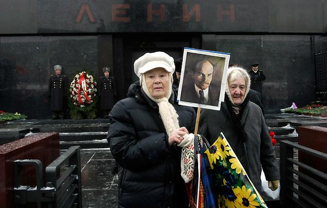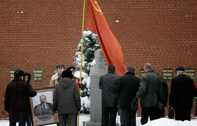 В день 87-й годовщины смерти Владимира Ленина коммунисты вышли на Красную площадь. Пока в Госдуме вновь разгорелся спор о погребении Ленина, разноликая немногочисленная толпа, неся перед собой красное знамя, пришла к Мавзолею, где хранится тело вождя, и возложила цветы. Источник: ФОТО: AP