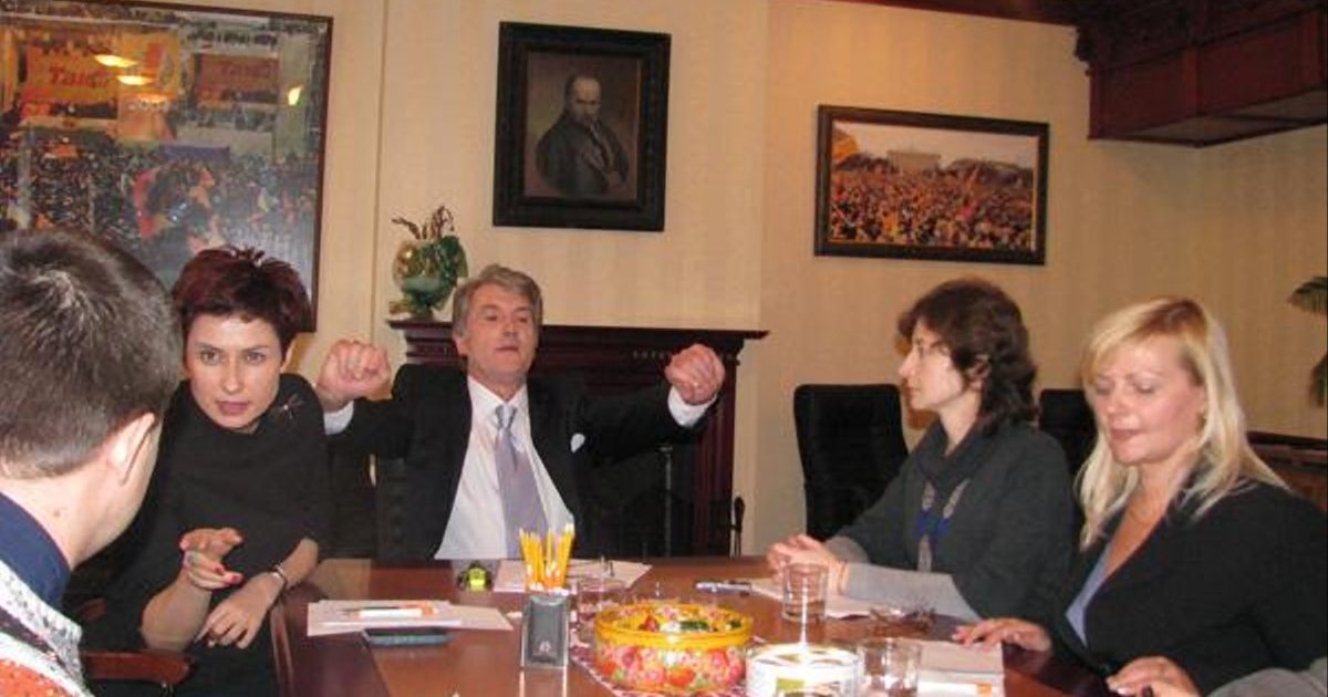 На одном из фото Виктор Ющенко готовится к заседанию. Возле него пресс-секретарь Ирина Ванникова, которая всегда сопровождает экс-президента. Присутствует в институте и бывший гендиректор "Укрспецэкспорта" Сергей Бондарчук.
