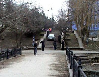 В Симферополе посреди пешеходной лестницы в районе улицы Набережной сотрудники ГАИ задержали водителя такси, который находился за рулем автомобиля под действием наркотиков.