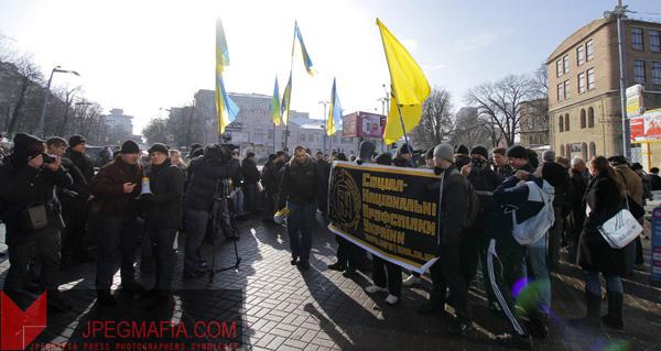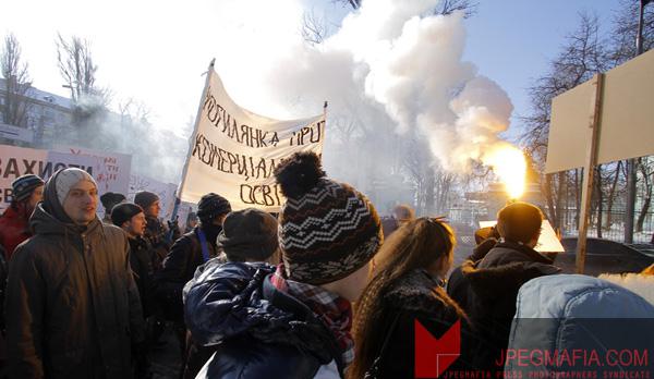 Здание Верховной Рады пикетируют студенты - просто студенты, "левые" и социал-националисты. В 10:00 они окружили 9-й подъезд Верховной Рады, через который депутаты обычно заходят на согласительный совет. Требования половины студентов в основном касаются бесплатного образования, представители другой половины скандируют "Революция!" и требуют глобальных реформ в образовании.