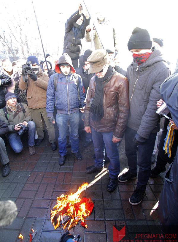 В 10:55 между "правыми" и "левыми" студентами произошла небольшая стычка, которую разнял отряд "Беркута", став двойным кордоном между протестующими. После этого протестующие обвинили друг друга в провокациях.