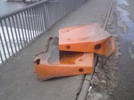 В дорожном полотне зияют сквозные метровые дыры. От глаз прохожих их предусмотрительно закрыли пластиковыми колпаками. Между тем, движение на мосту продолжается. И пешеходы ходят, и многотонные машины проезжают. Вероятно, необходимы более строгие меры предупреждения, чтобы не случилось беды.Уникальный киевский трамвай 1909 года сдали на металлолом. ФОТОрепортаж