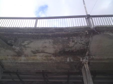 Об аварийности тротуара на Венецианском мосту в гидропарке свидетельствуют не только соответствующие указатели. В некоторых местах мост заметно прогнулся на 20-30 см. От сооружения отваливаются куски бетона с железной ржавой арматурой.