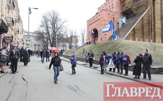 В Киев съехались регионалы. ФОТОрепортаж Акция прошла в рамках совместного социального проекта «Сделаем Киев чистым», инициаторами которого являются столичная городская государственная администрация и всеукраинское молодежное объединение «Молодые регионы». Несколько милиционеров, до десятка молодых региональных активистов да представители КГГА – вот и весь «экскорт», сопровождавший кран, убирающий МАФы (малые архитектурные формы). Почему под снос пошли только два киоска, продававших до сих пор лотерейные билеты и сигареты, никто не удосужился объяснить. Продавцы соседних киосков, которым удалось избежать чиновничьей экзекуции, мирно наблюдали за показательной уборкой МАФов. |