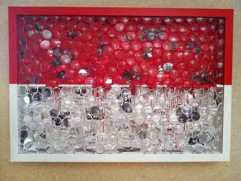 Работа Дэвида Датуны называется "Монако. Точки зрения миллионов". Инсталляция выложена из множества линз, сквозь которые просматривается некий исторический портрет княжества. Основа инсталляции – медиа-коллаж из вырезок прессы, выполненный в цветах флага Монако – красный с белым.