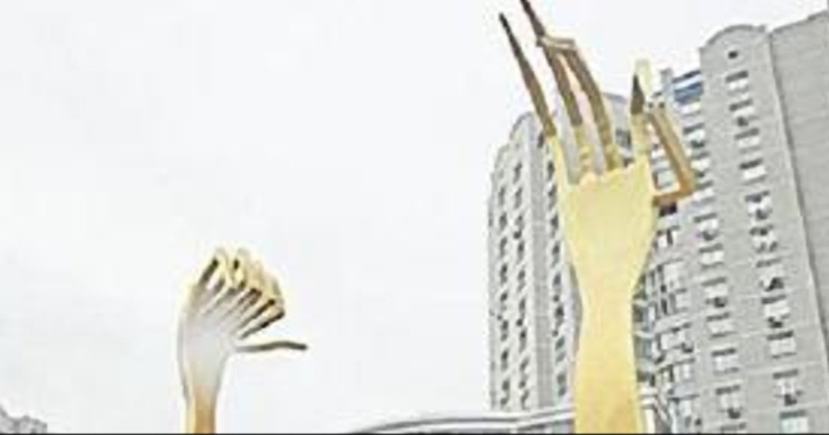 В Киеве на улице Драгоманова, недалеко от станции метро «Позняки», появился необычный памятник: четырехметровая скульптура «Вилки у развилки»