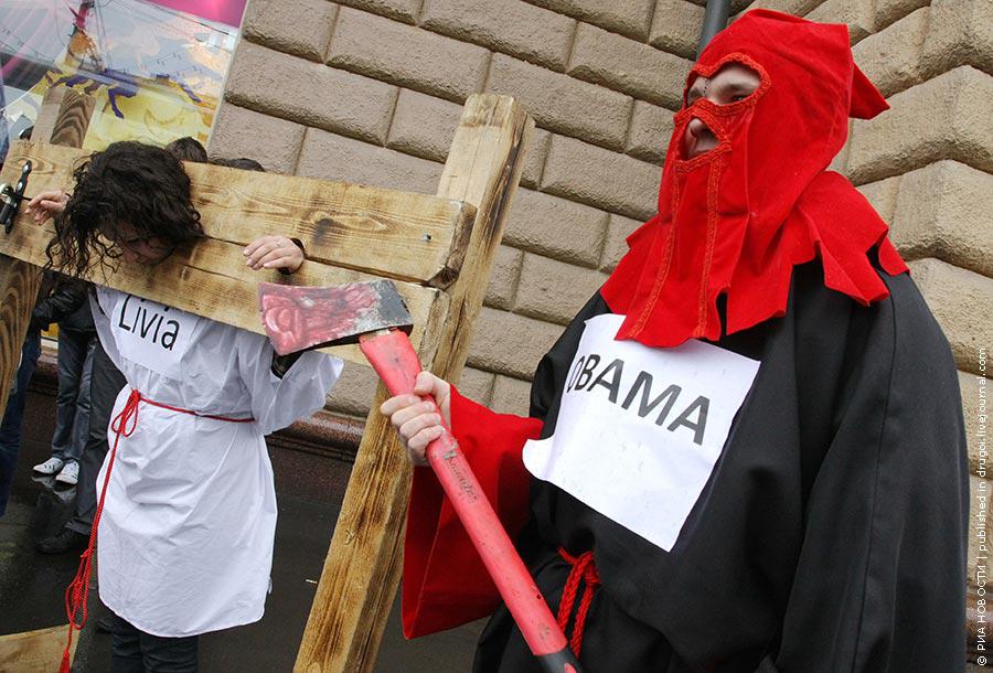 Движение «Россия молодая» провело сегодня костюмированную акцию напротив посольства США. Как правильно пишется на английском языке название страны, которую активисты движения взялись защищать, никто из них не знал