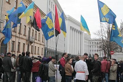 Украинская националистическая партия «Свобода» Олега Тягнибока провела во вторник у здания администрации президента в Киеве акцию, посвященную сегодняшнему приезду Владимира Путина