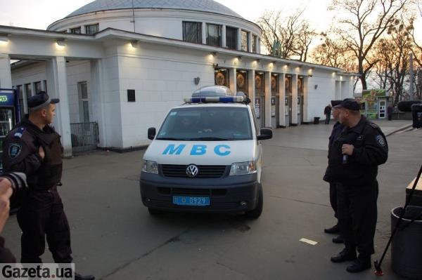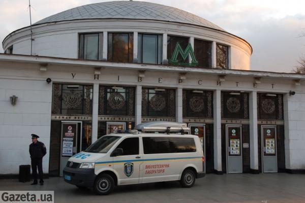 Станция метро "Университет" в Киеве вчера была закрыта на вход и выход и оцеплена милицией. К станции прибыли автомобили "скорой помощи", пожарная машина, спасательное подразделение МинЧС