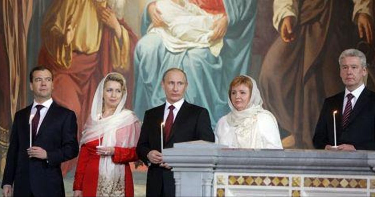 Медведев, Путин и Миллер присутствовали на Пасхальном Богослужении в в московском храме Христа Спасителя