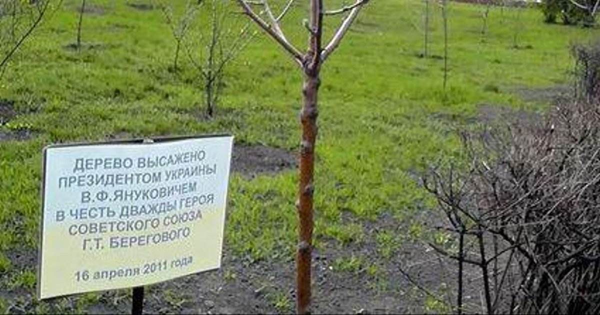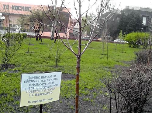 В г. Енакиево у дерева, высаженного Президентом Украины В.Януковичем во время визита 16 апреля, установили табличку