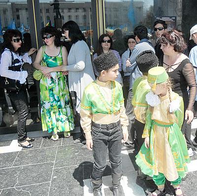 К 13:00 к площади Ленина стали стягиваться пять колонн с разных концов крымской столицы. Под флагами меджлиса и государственными флагами Украины они шли организованно, дружно скандируя речевки на крымско-татарском языке.