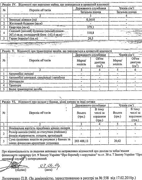 Янукович-младший владеет квартирой площадью 379 кв. м в Киеве. Также ему принадлежит земельный участок, площадью 16 соток, дачный "административный" дом площадью 367,4 кв. метра и хозблок площадью 143,4 кв. метра. Кроме этого, у него есть гараж, площадью 20,5 квадратных метров.