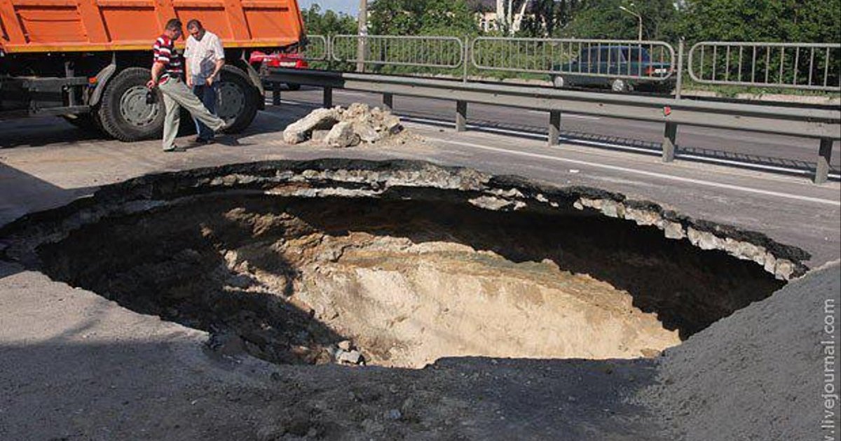 "До 6 часов вечера воскресенья Киевавтодор не мог решить, что делать, техники и обученных людей, чтобы работать в таких условиях на такой глубине, у них нет, потому было принято решение засыпать провал песком, после чего построить в нём классическим методом колодец с временной крепью, внутри которого восстановить пострадавший. После принятия решения началась засыпка песком. Засыпка достаточно активно продолжалась около полутора часов. Однако, через полтора часа в песке начала образовываться воронка, в которую благополучно ушло несколько кубов песка с очередного самосвала и засыпку прекратили", - сообщает блогер.