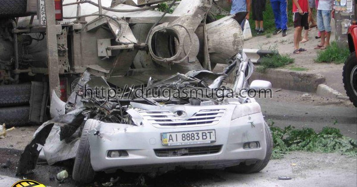 Машина начала опрокидываться, при этом зацепила два автомобиля: Daewoo Lanos и Мitsubishi. В конечном итоге бетономешалка упала на "Тойоту", которая двигалась во встречном направлении и остановилась, после того как водитель авто увидел, что происходит.