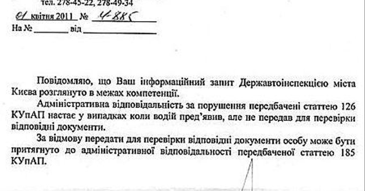 Об этом свидетельствует ответ управления ГАИ Киева на запрос издания "Дорожный контроль".