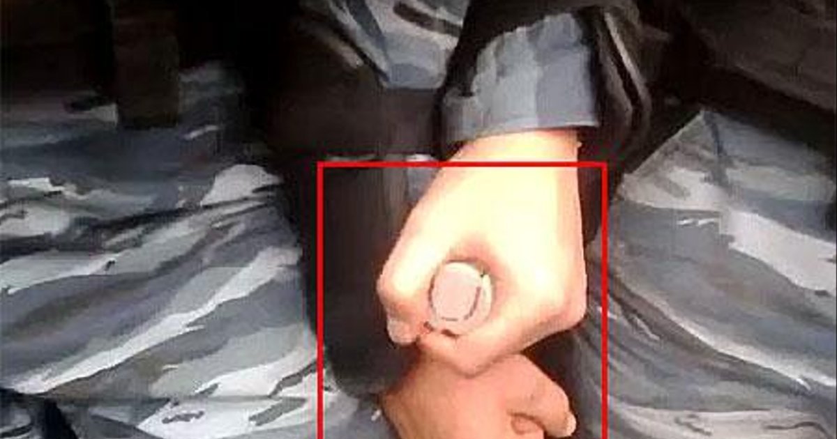 Так, на одном из кадров видео можно заметить, как сотрудник "Беркута" прячет газовый баллон, который увидели у него в руках.