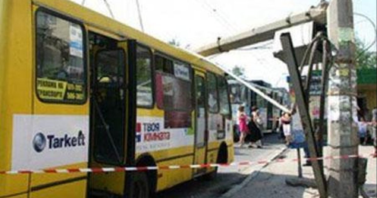 Бетонный столб с оборванными электрическими проводами упал на троллейбус с 20 пассажирами в Крыму.